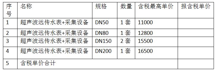 我公司擬對益民百花二期、山水華庭裝表接水工程使用的超聲波遠傳水表、采集設備進行采購。采用內部比價方式采購,歡迎符合條件的各潛在投標單位。