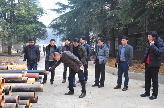2月8日,公司班子成員在鐵山加壓站給職工拜年時(shí)查看熊家境供水工程管材