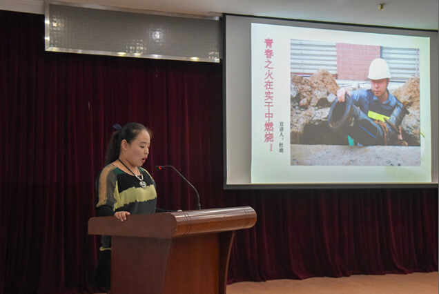 圖為,宣講員杜迪同志宣講黃彬同志的先進事跡。