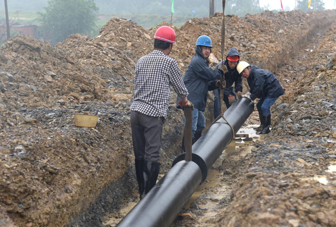 8日,在湖北?。S石)首屆園博園供水工程現(xiàn)場(chǎng),給排水工程公司工作人員堅(jiān)持雨中作業(yè),搶抓工程進(jìn)度。據(jù)介紹,預(yù)計(jì)5月20日前水管可鋪向園博園,為園區(qū)供上自來(lái)水。