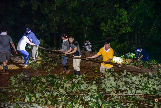 突擊搶險(xiǎn)任務(wù)是要求將堤坡上所有的樹干、樹枝裝上車。晚上,燈光昏暗,再加上有的樹枝被土方淹埋,有的樹干要幾個(gè)人才能拉動(dòng),隊(duì)員們相互配合,齊心協(xié)力,汗如雨下,不顧蚊蟲叮咬,有的現(xiàn)場(chǎng)手被樹干劃出了血。黨員王斌、繆魁沖鋒在前,帶頭扛起大樹枝、埋壓的樹枝,在抗洪一線發(fā)揮了模范帶頭作用。經(jīng)過4個(gè)多小時(shí)的奮戰(zhàn),一共拖走了18車樹枝,晚上12點(diǎn)才將500米堤段的散放樹枝裝車完畢。隊(duì)員們個(gè)個(gè)是一身汗水一身泥水,個(gè)個(gè)拖著疲憊的身子,回家時(shí)已是半夜1點(diǎn)多了。