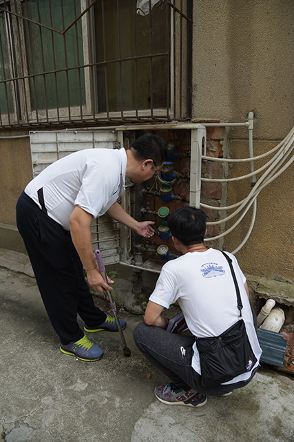 8時30分許,再見到張國良和吳凱時,他們已經(jīng)沿著鳳凰山上抄了一圈的表,兩人的衣服濕了干、干了濕,留下一圈圈深色的印記。吳凱告訴張國良,抄地表的止碼時,地表蓋很難打開,要用專門的鋤頭敲兩下,再沿著開口處勾起,就能輕松很多。