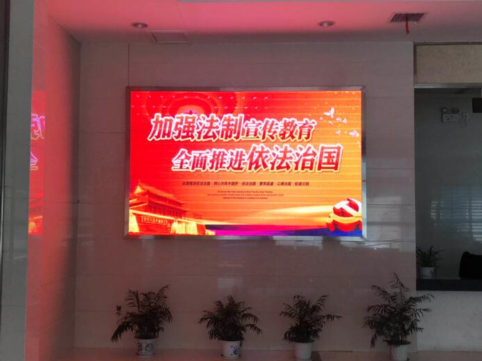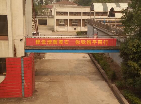 圖為LED屏正在滾動(dòng)播放宣傳標(biāo)語