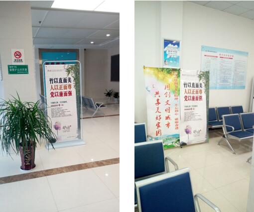圖為客服大廳、收費(fèi)大廳擺放的廉潔海報(bào)