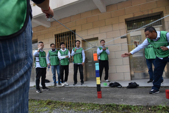 此次戶外拓展訓(xùn)練項目以團隊協(xié)作為主要形式,集娛樂與競賽于一體。干部職工們首先被隨機分成六個組,隨后經(jīng)過小組集體討論,確定了各自的隊長、隊名、隊歌、口號、隊型,并進(jìn)行了展示。
