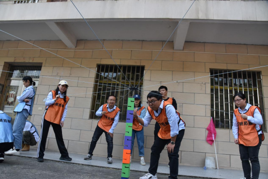 緊接著,大家以小組為單位參與《步步高升》、《環(huán)游世界》、《共繪藍(lán)圖》、《定向?qū)殹返雀傎愴椖俊4蠹?/span>積極參與,熱情高漲,相互支持,相互鼓勵,團結(jié)協(xié)作,你追我趕,圓滿完成了每一項比賽。