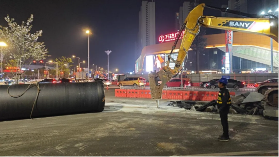 在3月29日夜間,下陸萬(wàn)達(dá)商圈十字路口燈火通明,大泉路生態(tài)廊道項(xiàng)目廣州路段DN1400管網(wǎng)施工現(xiàn)場(chǎng),挖機(jī)轟鳴開(kāi)挖溝槽,貨車來(lái)往運(yùn)送設(shè)備,現(xiàn)場(chǎng)一派繁忙景象?! ?/span>