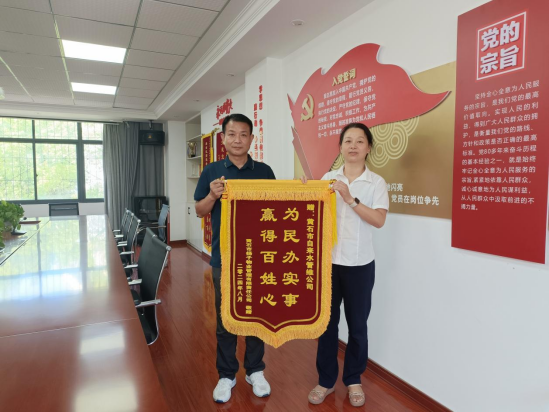 8月17日下午5時,團城山玉龍灣19層用戶水龍頭開始嘩嘩流出自來水,影響玉龍灣小區(qū)高層用戶無水問題,在市水務集團供水搶修隊員不懈努力下徹底解決。21日上午,黃石市揚子物業(yè)管理有限責任公司經理與居民代表自發(fā)送來錦旗,感謝管維公司維修人員頂著高溫天氣為他們送上“汩汩清泉”。