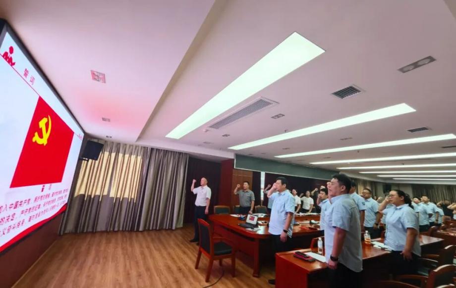 在主題黨日環(huán)節(jié),全體黨員莊嚴(yán)重溫入黨誓詞,集體誦讀了《中國共產(chǎn)黨章程》中關(guān)于黨員義務(wù)的內(nèi)容,進一步強化了黨員的身份意識和責(zé)任擔(dān)當(dāng)。